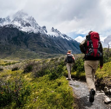 Ubicado en la Patagonia argentina, El Chaltén es conocido como la "Capital Nacional del Trekking". Aquí encontrarás rutas impresionantes, como el sendero hacia el Cerro Fitz Roy y la Laguna de los Tres, que ofrecen vistas espectaculares de montañas, glaciares y lagos.